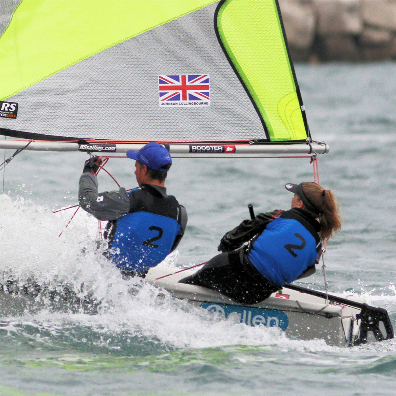 The Rooster Podium Bibs are designed to provide a streamlined, catch free fit when worn over the top of a buoyancy aid. The snug fitting lycra stretches over buoyancy aids and trapeze harnesses to minimize snags on sheets, trapeze and control lines and prevent tiller extensions getting hooked underneath shoulder straps.