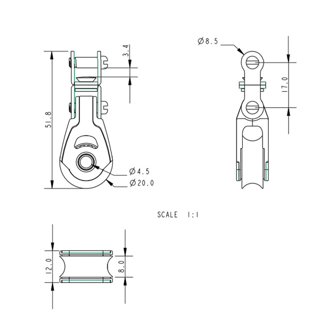 The A2020 is our go-to low friction, fast rolling, small pulley. It?s lightweight and strong, making it ideal for dinghies, windsurfing, kitesurfing and anything else that runs smaller diameter lines.