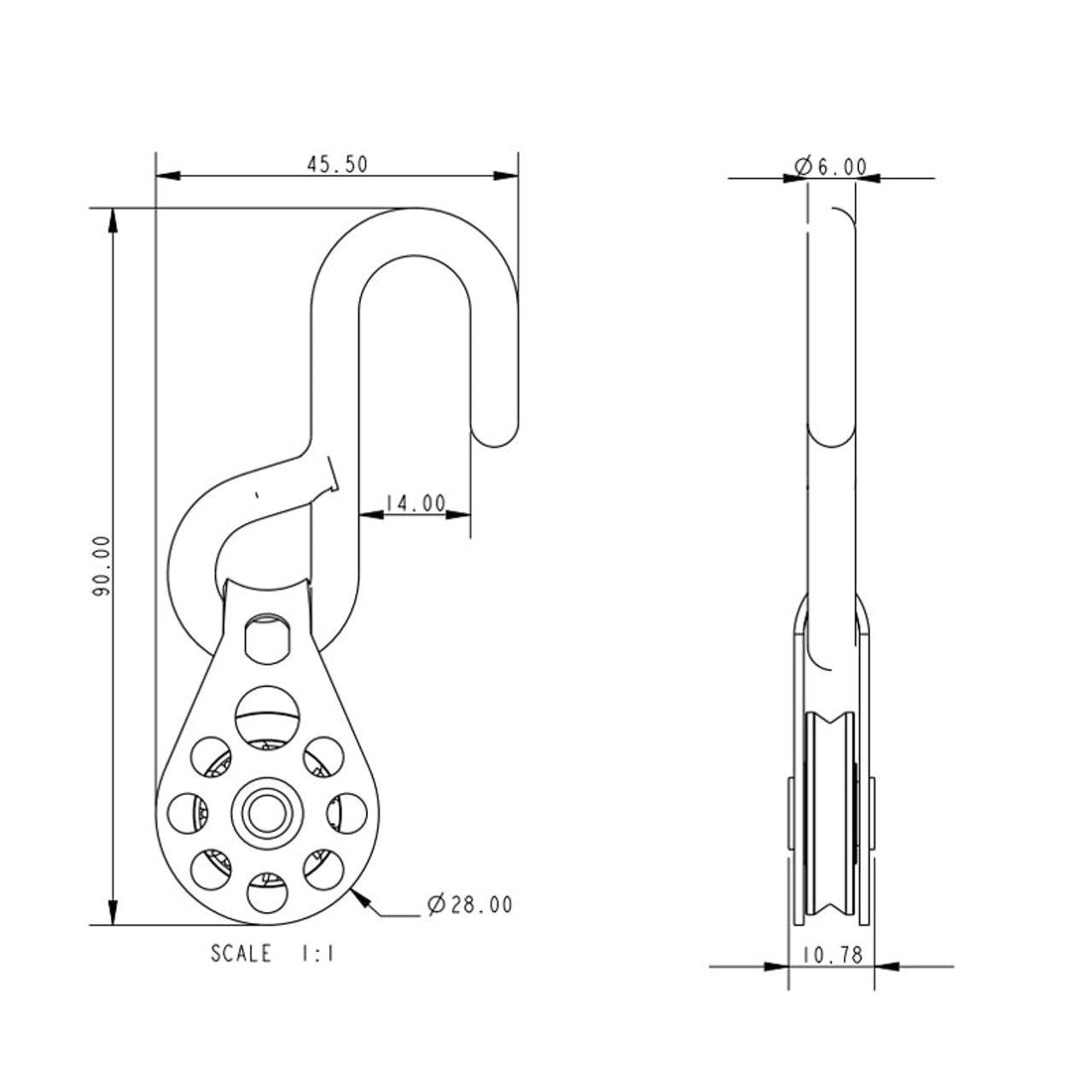 Allen Brothers 25MM Mini High Tension Block Single Hook Turned 90 Degrees