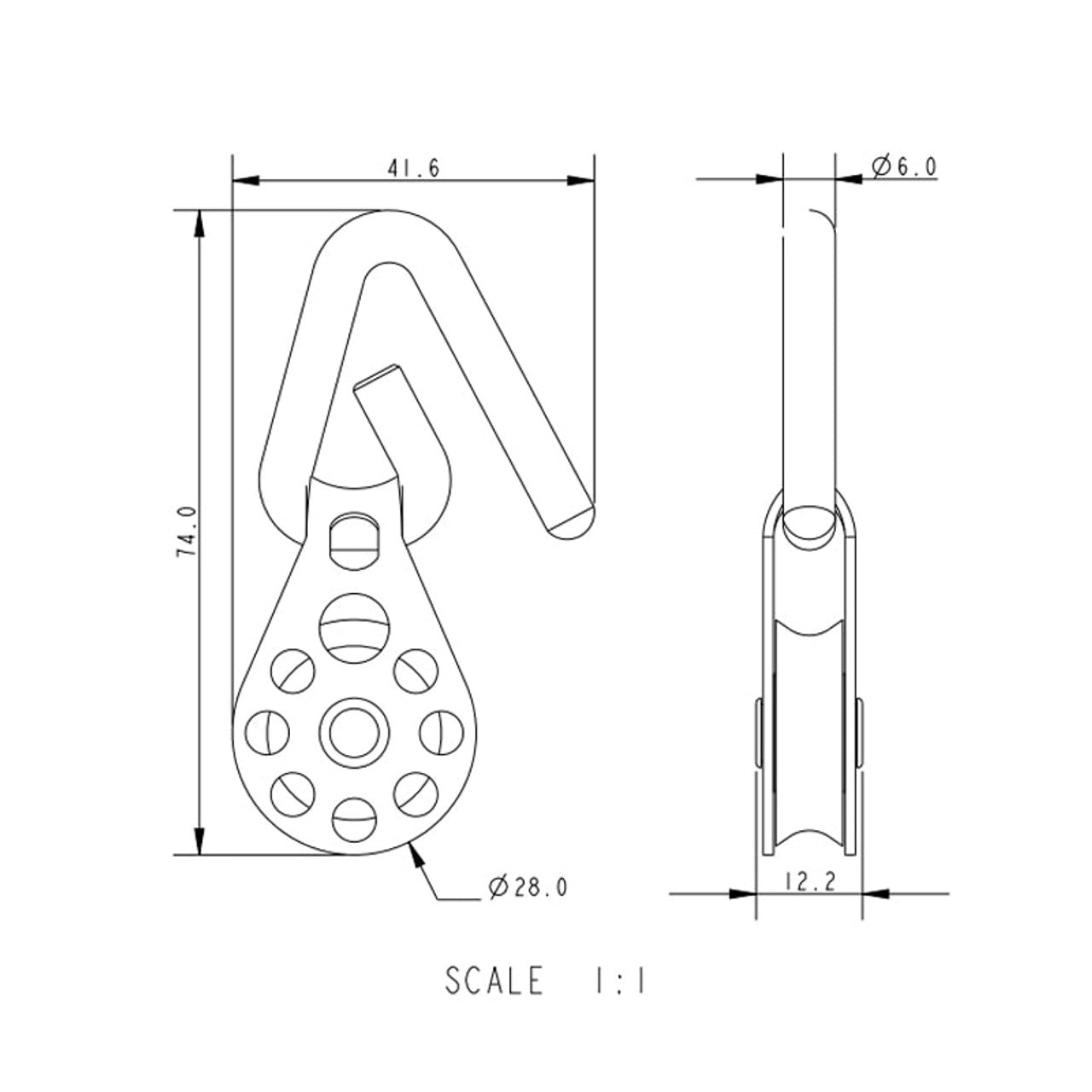 25mm Single Plain Bearing Block With Acetal Sheave And Hook.