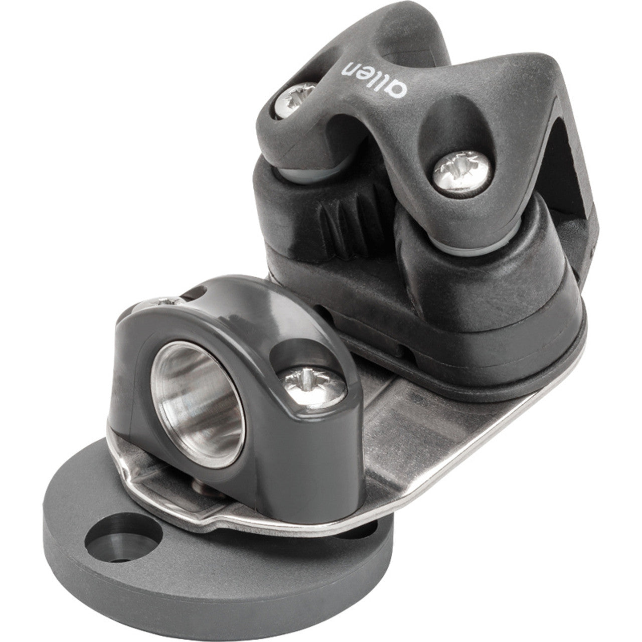 Swivel Cleats have been designed to give smooth sheeting articulation for a variety of applications from jib sheeting to vang systems. The cam cleats are mounted on a high-grade stainless steel platform and