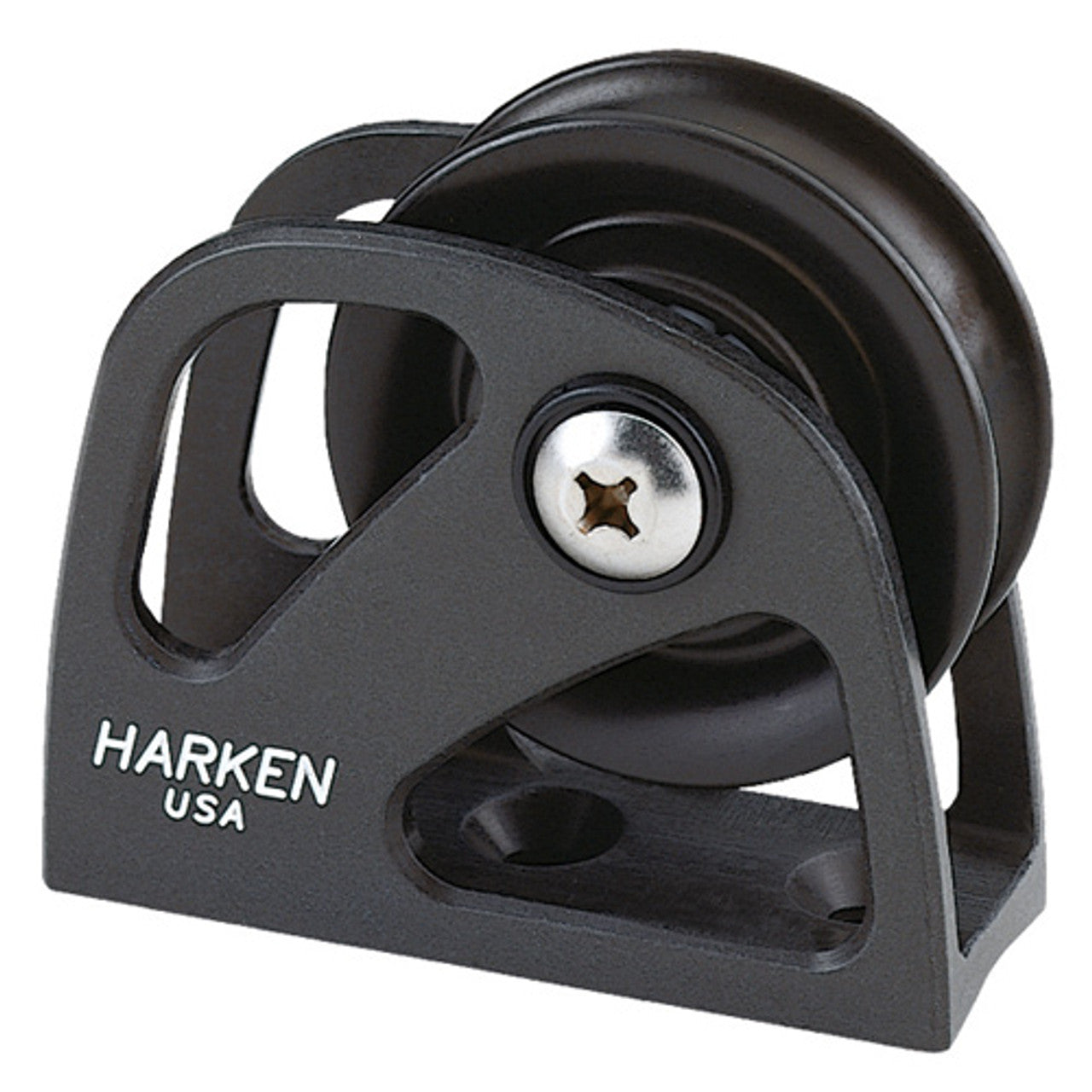 Low-profile mastbase halyard lead blocks are lightweight and can be grouped in a small area at the mastbase. Flared cheeks prevent chafe on the halyards.