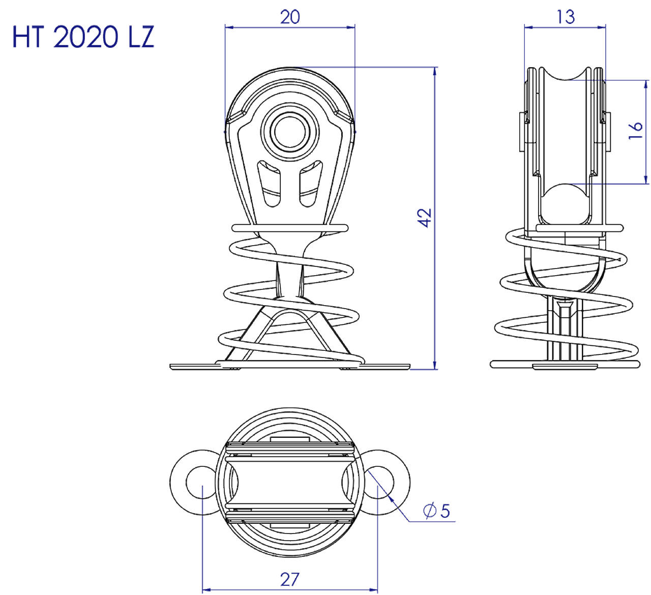 - Light open axle allows rope to be tied trough negating the need for end additional becket.
