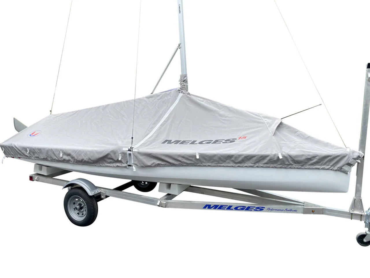 High-quality deck cover for the Melges 15. This cover is designed to fit securely while the mast is up and the boom is on. The tented design helps water run off the back, and the waterproof yet breathable material ensures your boat stays dry without overheating. Perfect for protecting your Melges 15 from the elements.