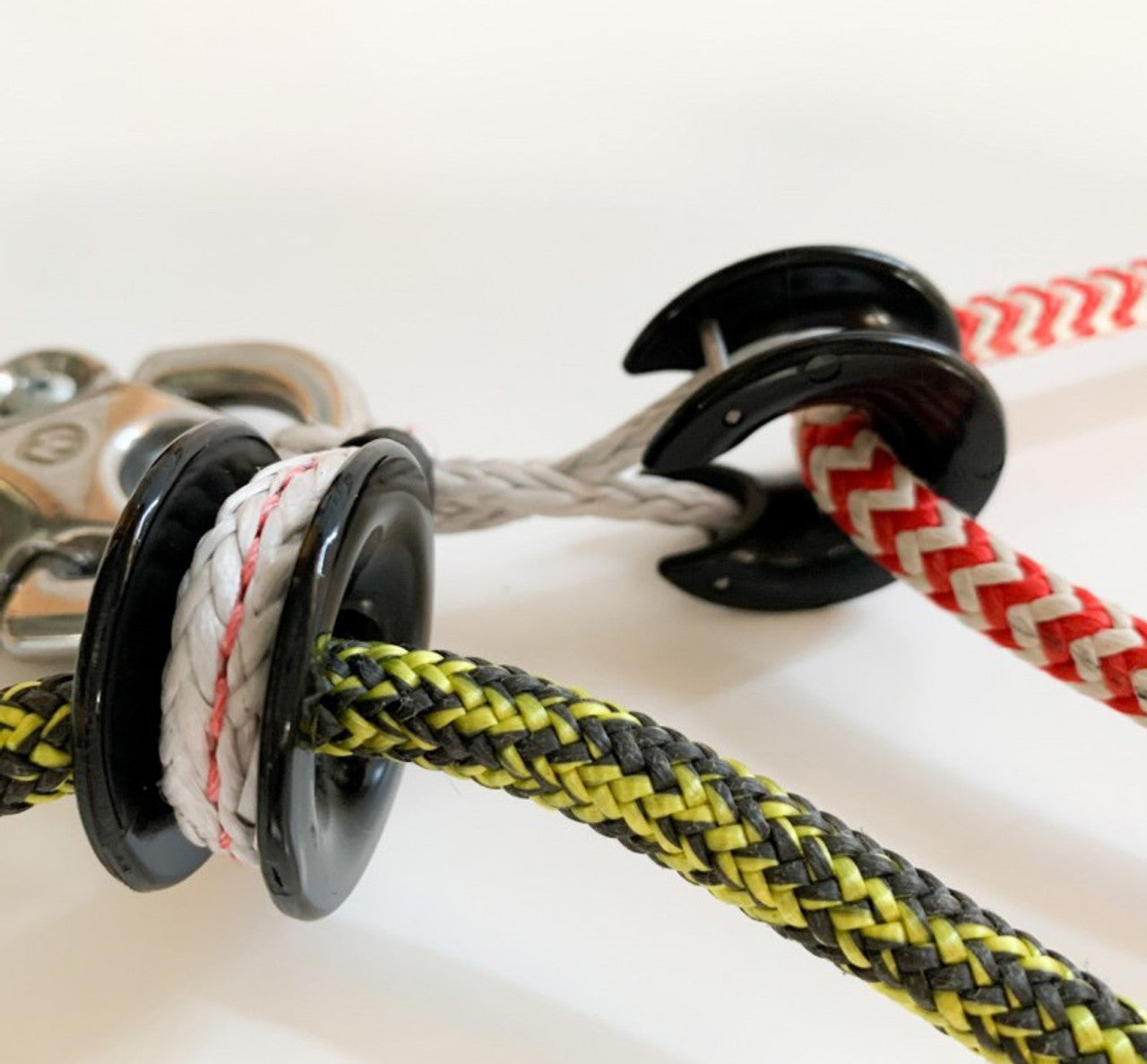 - For quick and easy fastening between two elements: mainsail foot, mast foot haulers, barber-hauler, in-hauler, lazy-jack, lazy-bag, hoist 2/1, etc.