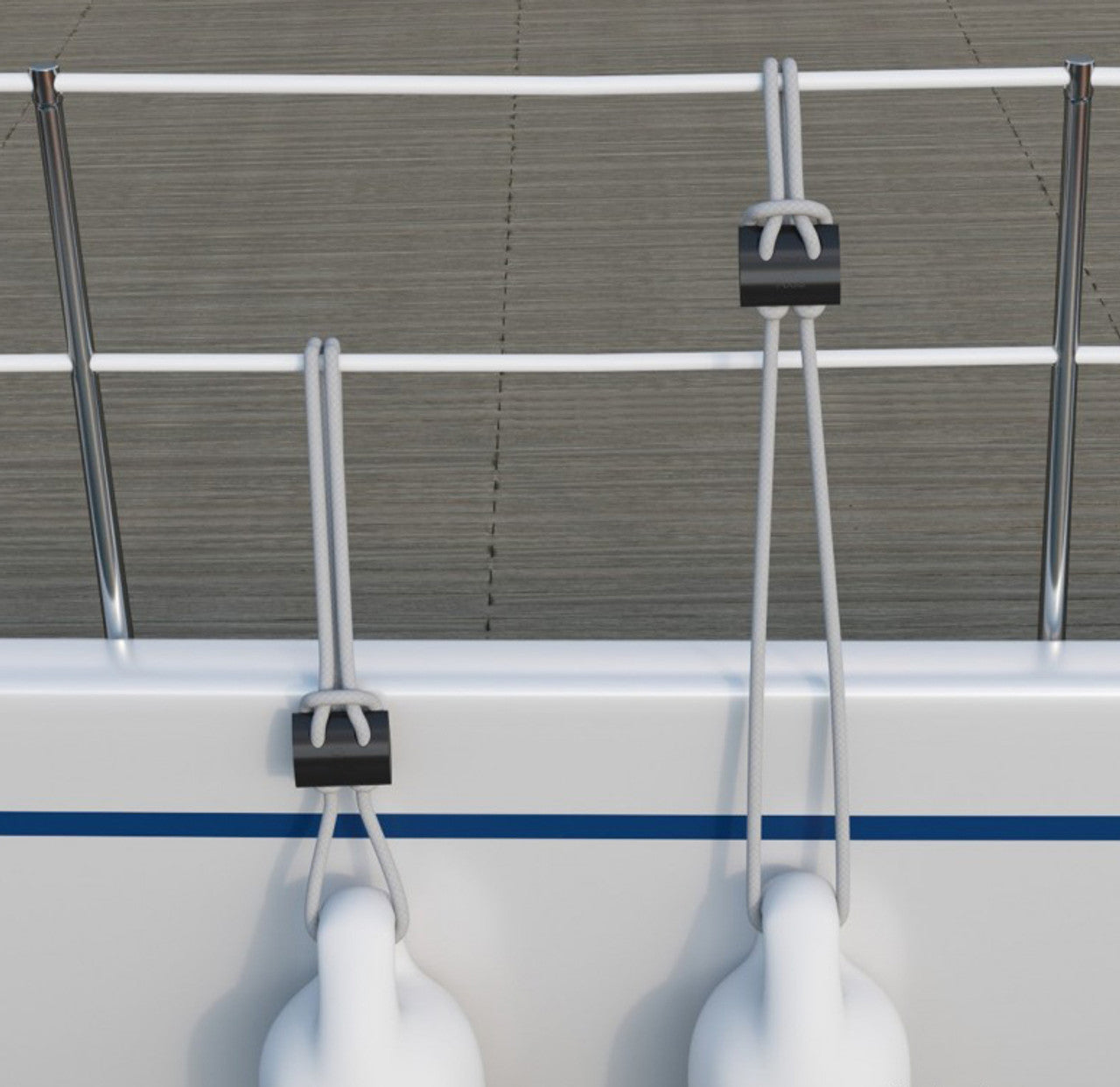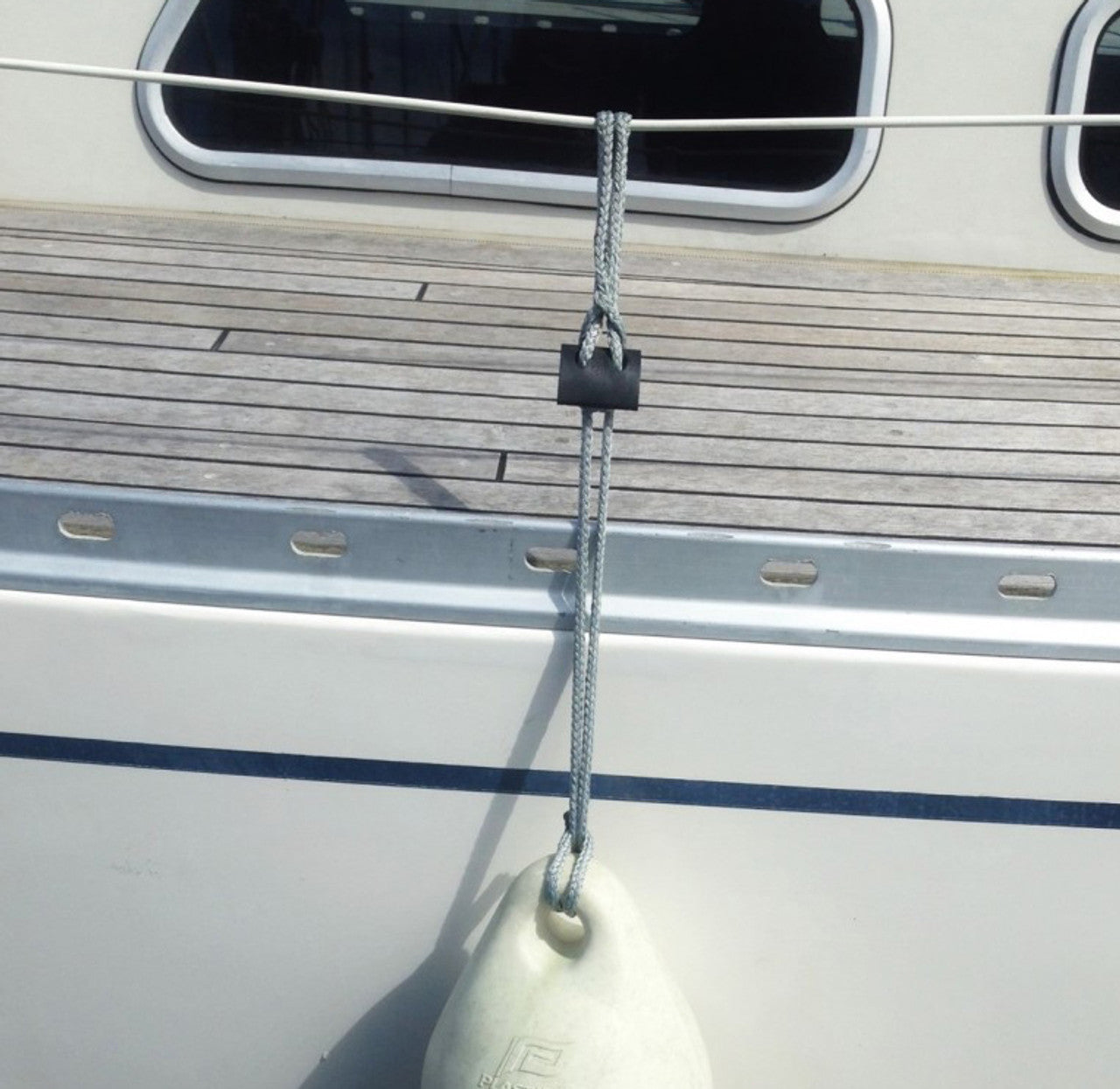 Adjustable fender cleat on strop. Permanent device to quickly set and attach your fenders.