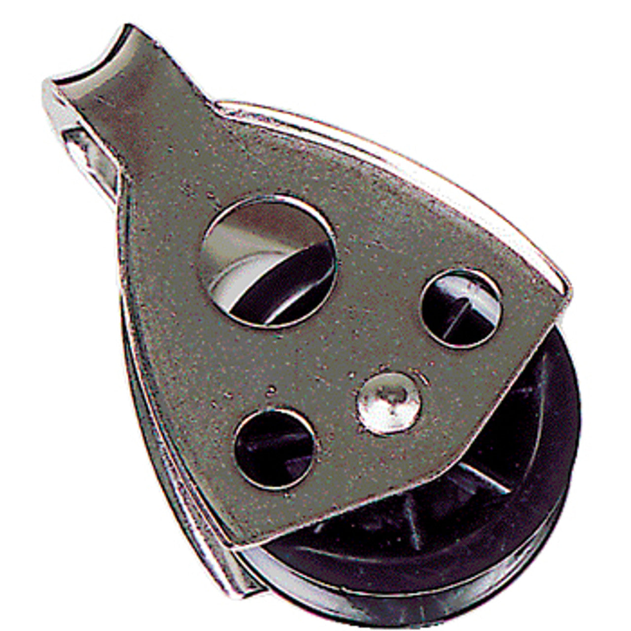Halyard block as used on SCHOOL mast, stainless steel cheeks, nylon 22 mm sheave, plain bearing.