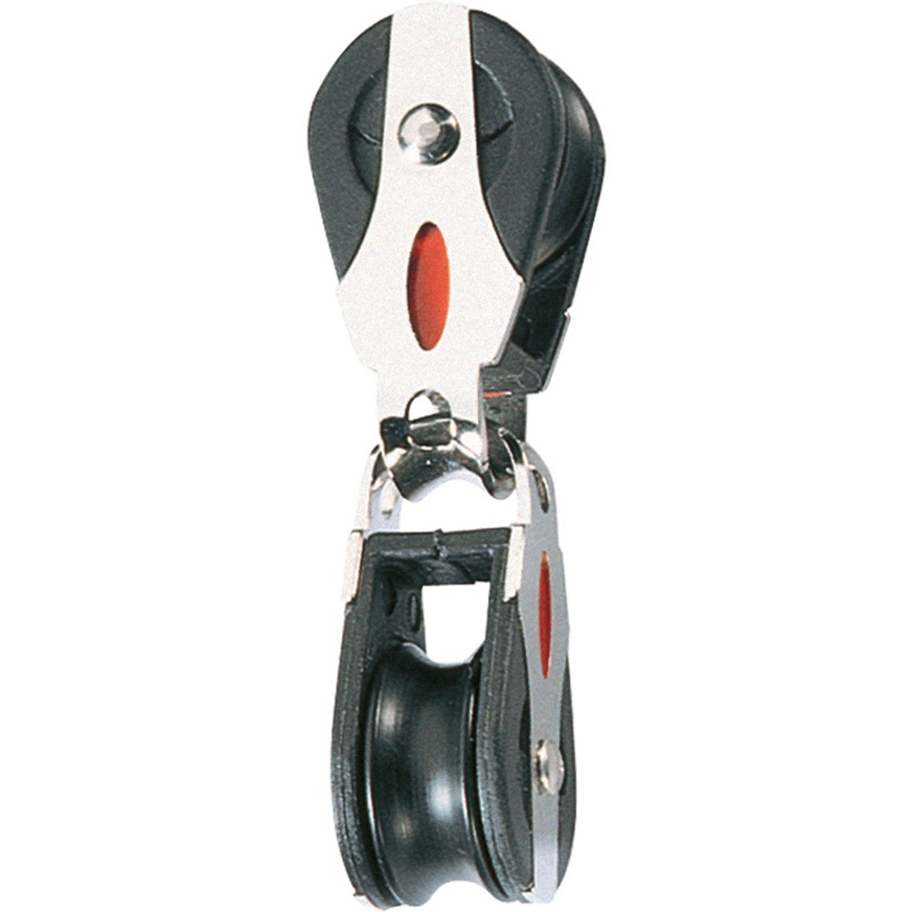 Lightweight Precision moulded Acetal sheaves running on stainless steel or Torlon° ball bearings provide high performance & low friction.