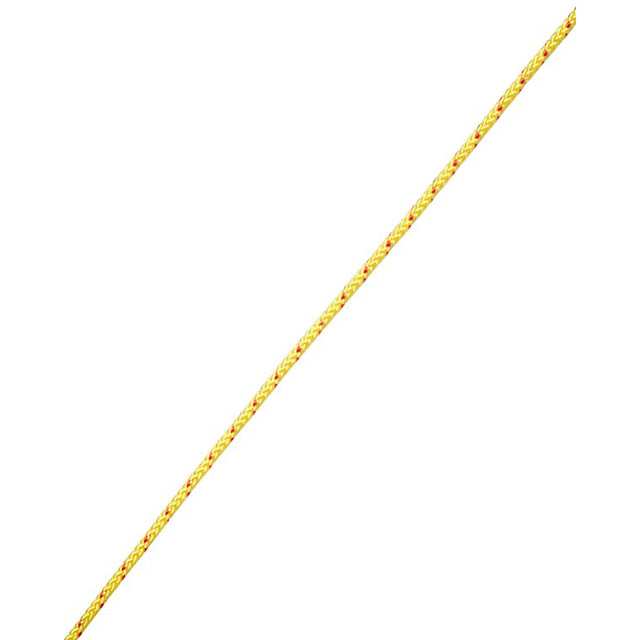 6mm Yellow Floatline with a red fleck, made from 8-plait Multifilament Polypropylene, sold per metre.