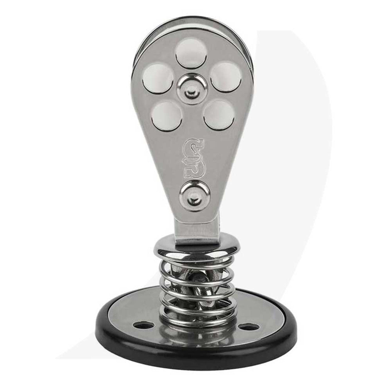 Excellent for fixed position halyard, sheet or control line fairleads. Block swivels 360°, tilts in all directions and is supported by a heavy gauge S.S. sprint to prevent deck contact. Large Ø base helps distribute loads to a larger surface area than other smaller designs.