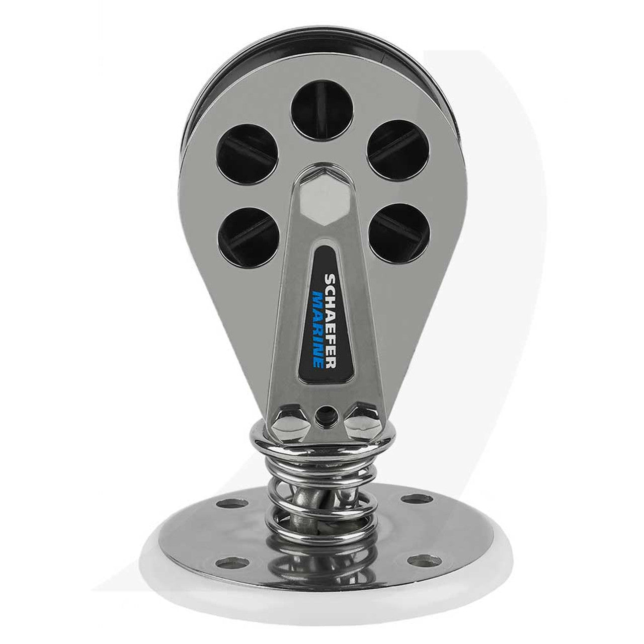 Excellent for fixed position halyard, sheet or control line fairleads. Block swivels 360°, tilts in all directions and is supported by a heavy gauge S.S. sprint to prevent deck contact. Large Ø base helps distribute loads to a larger surface area than other smaller designs.