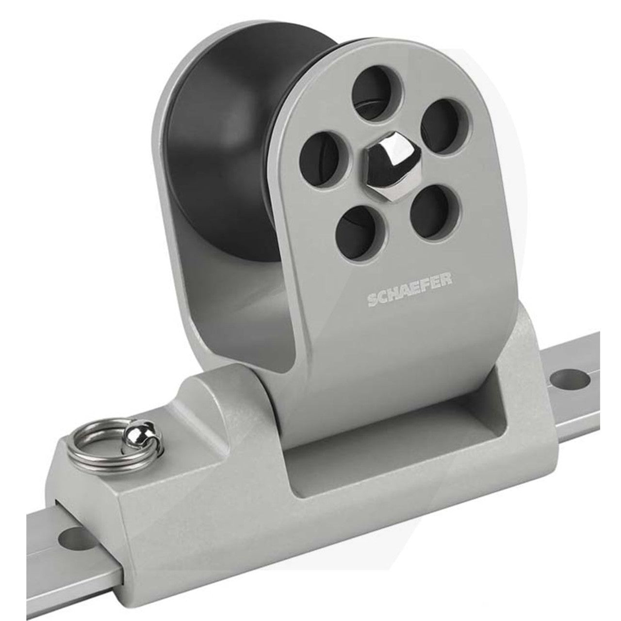 Schaefer's Twin Sheet Lead Blocks allow for twin sheets through it's wide flared sheave permitting easy sail changes. The Cage and Slide body are computer machined resulting in incredible strength and precision. Each Block provides a low profile articulating sheave for a proper lead from the sail through the block and into your cockpit. Sheaves are hardcoat anodized aluminum running on the low friction Nomex™/Teflon™ Bearing. The New 32-81 features a canted design centering the load on the machined aluminum slide. In addition, the aluminum sheave runs on the Nomex™/Teflon™ Bearing as well as Delrin™ Ball Bearings for a very strong and smooth lead. Finally, the addition of two S.S. springs keeps the block upright when not in use.