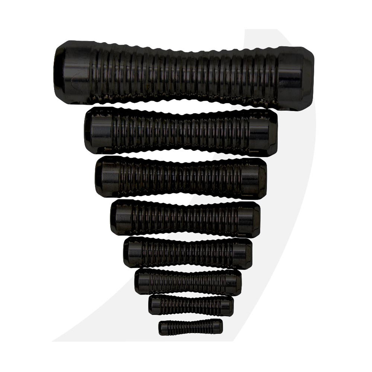 The main feature of the Tylaska dogbone design is its unique patented tapered design with a grooved texture that grabs onto the line and prevents slippage. As the dogbone relies on friction to keep the connecting line from slipping off its ends, designs with straight shanks are not very secure and adding flanges to the shank creates snagging problems. Tapering the shank is better, but still does not grip the line. The new Tylaska design has both a taper and multiple surface humps that grip the line but do not cut or damage the fibers. This feature works extremely well and makes a big difference over competing designs.