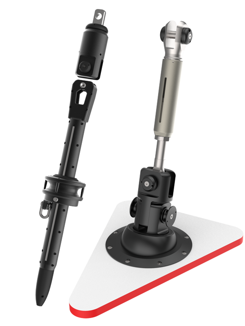 JIBER is a structural jib or genoa furler that works without the usual aluminum extruded foils. The rod forestay is linked to the drum and swivel, and rotates to transmit the torque and furl the sail. The sail can be hoisted up and down, while the halyard tension can be adjusted at any time. The shuttle locks in position and unlocks automatically, guaranteeing faster, safer sailing and better boat handling.
